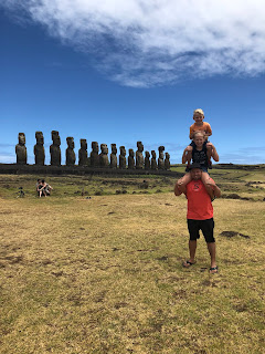 Double piggy back with Cody, Sawyer, and Zander at Ahu Tonjariki on Rapa Nui (Easter Island).