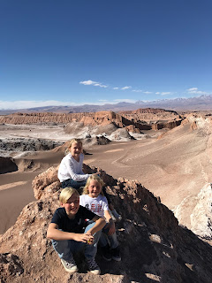 Ryder, Nash, and Sawyer at the top of the mountain we hiked at Valle de la Luna, San Pedro de Atacama.
